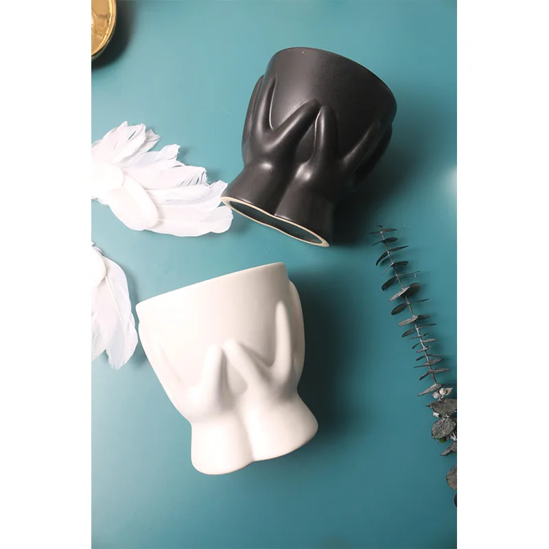 Hot Sale Pot Scandinavian Style solid color Home Decorative Vase Human Head Flower Arrangement ceramic flowe