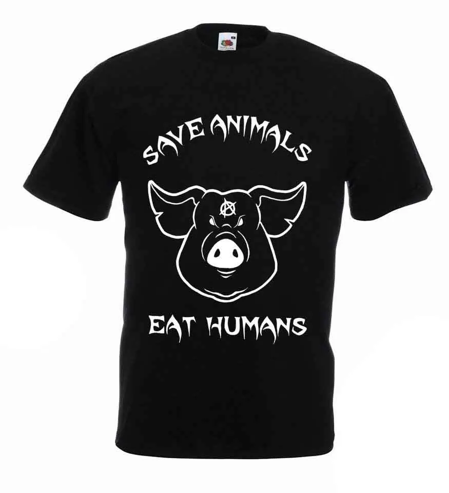 ORIGINAL Save Animals Eat Humans Vegan Unisex T-Shirt Angry Pig Activist Veganism Anarchy 2019 Latest Men Fa