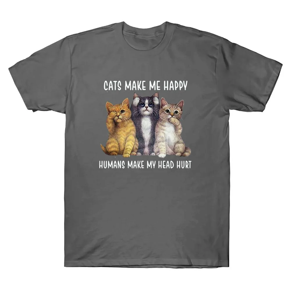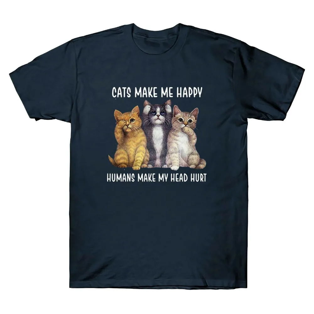 Cats Make Me Happy Humans Make My Head Hurt Funny Men T-Shirt Black Print 2019 Fashion O Neck Top C